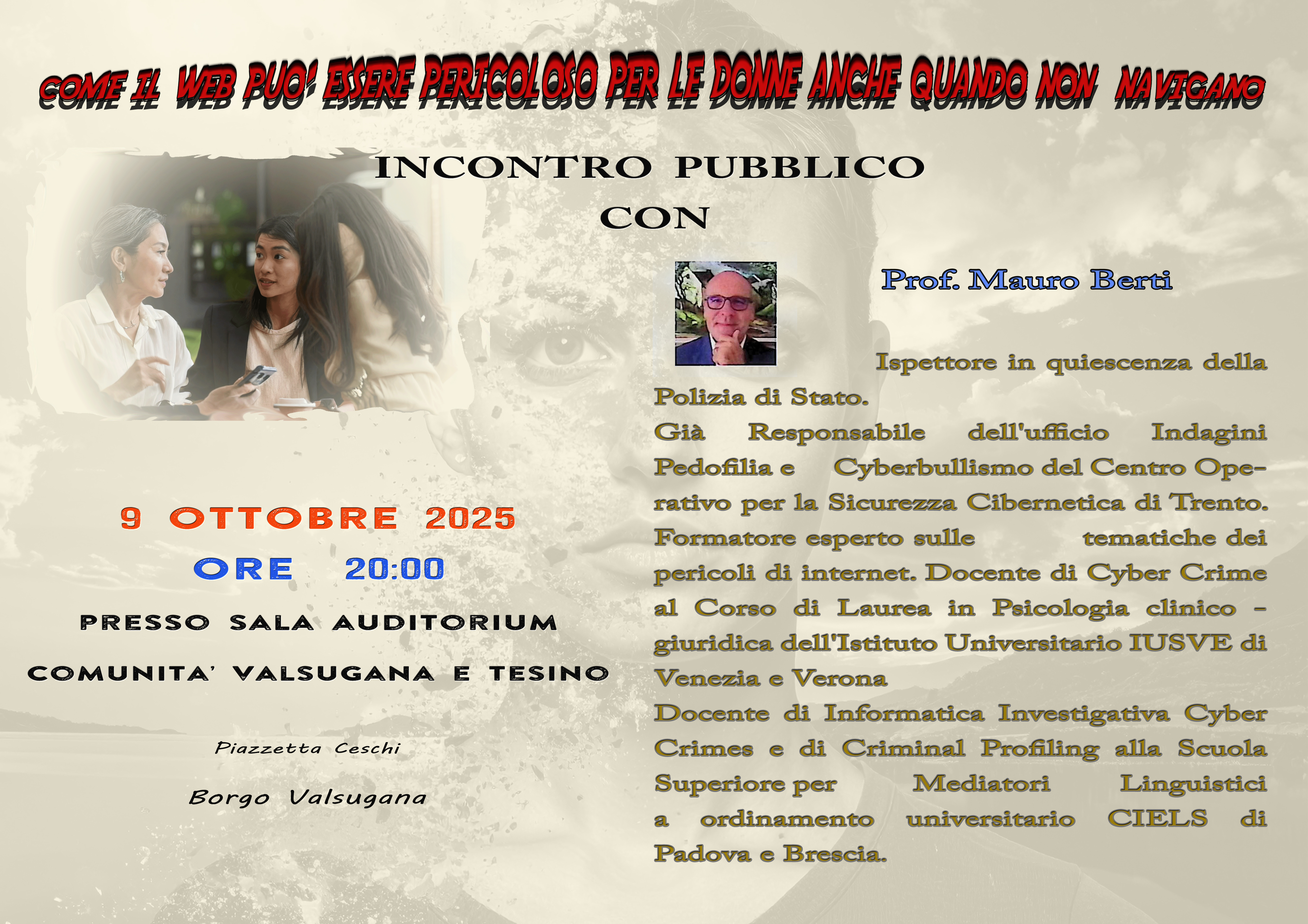 09/10/2025 | INCONTRO PUBBLICO CON PROF. MAURO BERTI SULLA VIOLENZA NEL WEB |
